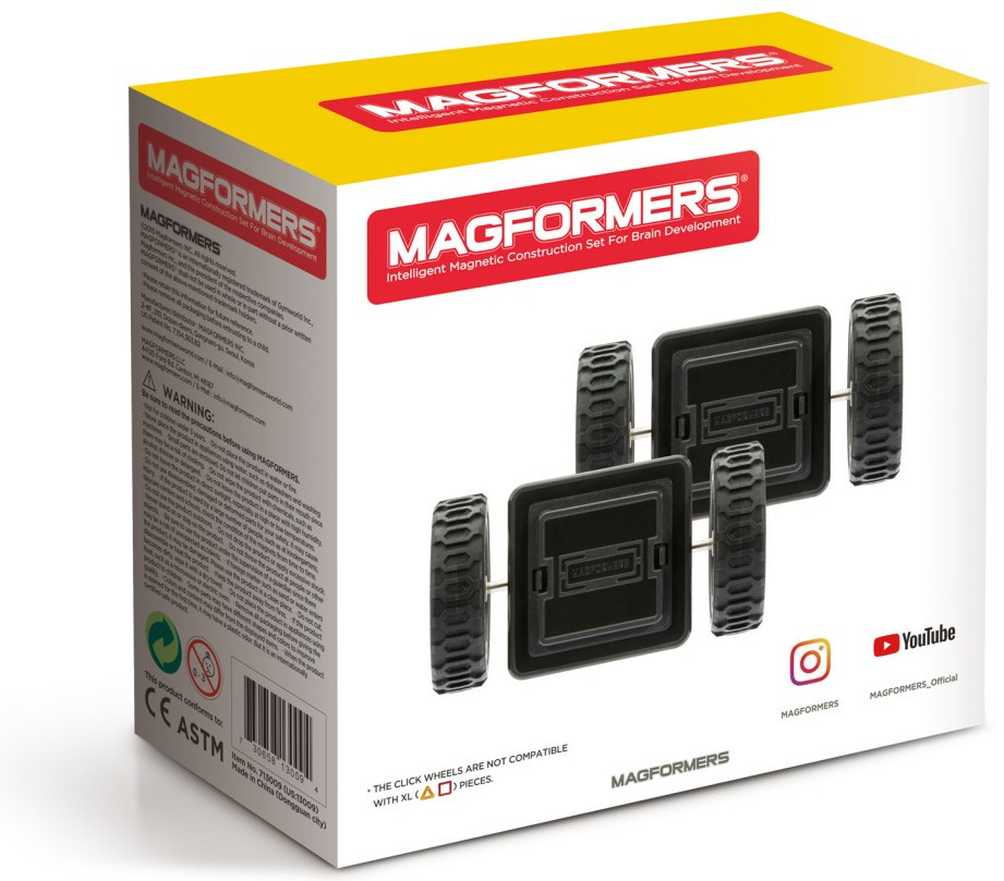 Magformers Магнитный конструктор «Click Wheels»В данный момент этот товар отсутствует в продаже. Возможно, у нас найдется аналогичный или похожий товар здесь. Клик-колеса - это новый вид колес от Магформерс. Они отличаются особым креплением: колеса вставляются в специальную выемку и защелкиваются, что обеспечивает большую устойчивость. Теперь вашему автомобилю не страшны никакие препятствия на дороге! |
