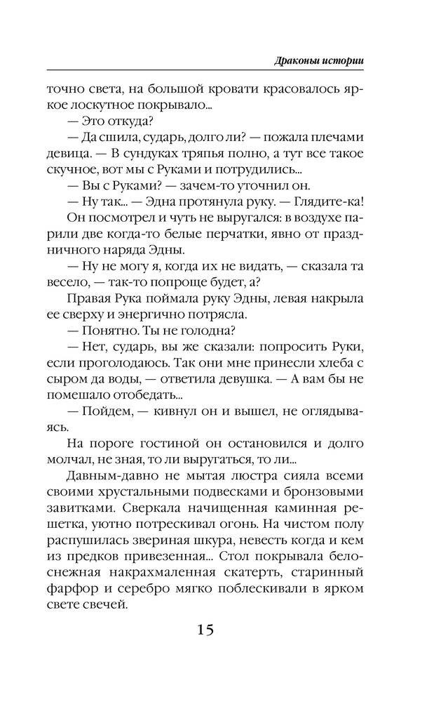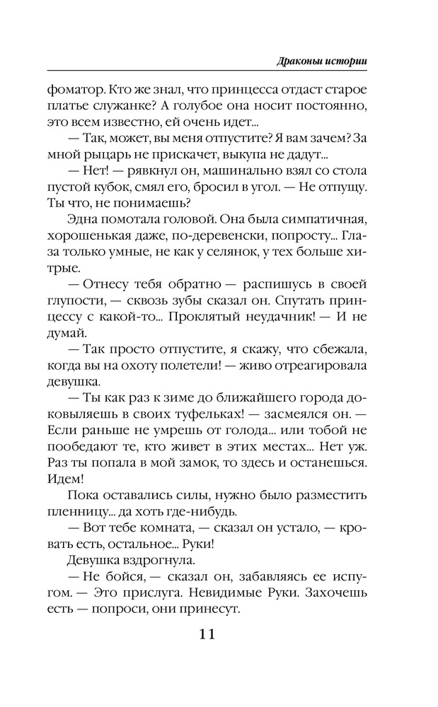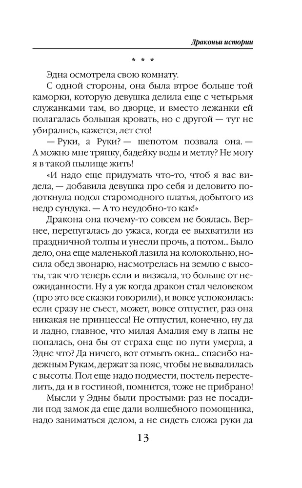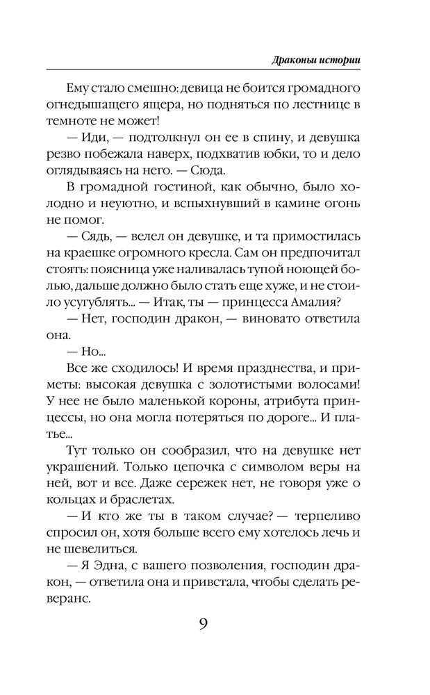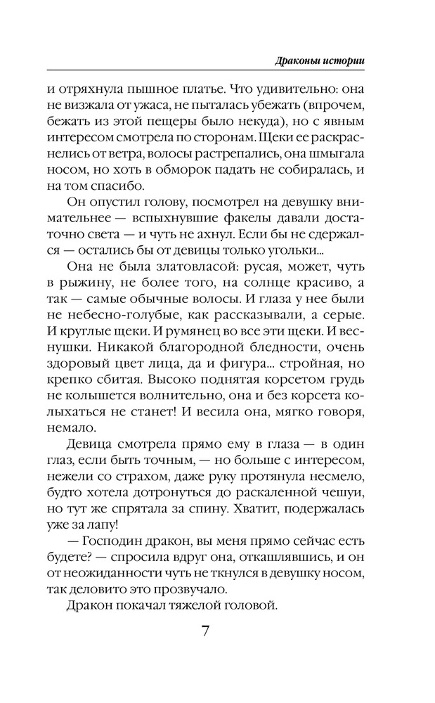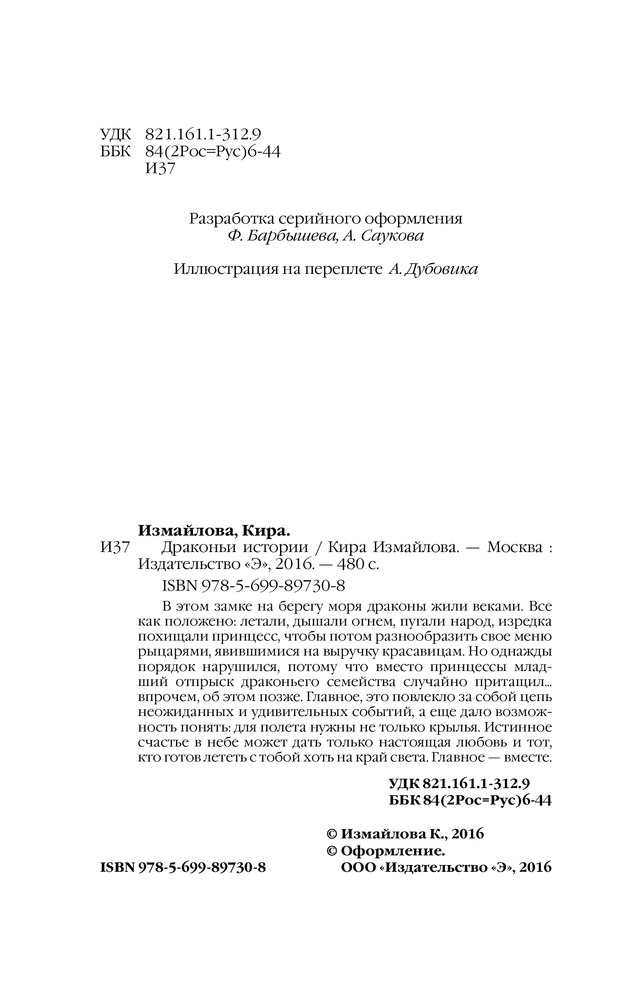 Драконьи историиВ данный момент этот товар отсутствует в продаже. Возможно, у нас найдется аналогичный или похожий товар здесь. Серия: Колдовские миры В этом замке на берегу моря драконы жили веками. Все как положено: летали, дышали огнем, пугали народ, изредка похищали принцесс, чтобы потом разнообразить свое меню рыцарями, явившимися на выручку красавицам. Но однажды порядок нарушился, потому что вместо принцессы младший отпрыск драконьего семейства случайно притащил... впрочем, об этом позже. Главное, это повлекло за собой цепь неожиданных и удивительных событий, а еще дало возможность понять: для полета нужны не только крылья. Истинное счастье в небе может дать только настоящая любовь и тот, кто готов лететь с тобой хоть на край света. Главное — вместе. |