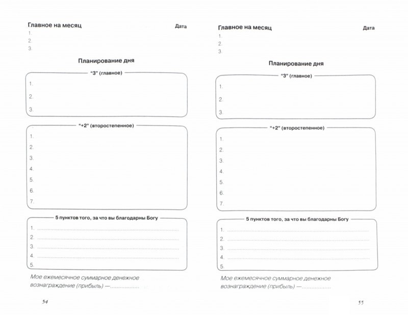 Ежедневник ТриллионераВ данный момент этот товар отсутствует в продаже. Возможно, у нас найдется аналогичный или похожий товар здесь. Серия: Мир Ислама Что вы делаете, когда вам нужно добраться до важного для вас, но не знакомого места (из пункта А в пункт В)? Вы открываете карту или включаете навигатор, мысленно или на листе бумаги прокладываете маршрут и движетесь по нему. Тогда вы точно попадете туда, куда вам надо (в пункт В), так как знаете, мимо чего проезжать и где сворачивать. А что происходит, если вы, не глядя на карту или не включая навигатора, садитесь за руль, выезжаете на шоссе и едете туда, куда направляется основной поток автомобилей? Шансы оказаться в желаемом пункте В равны нулю (0!). То же самое происходит с вами, если вы хотите чего-то достичь, реализовать некий замысел, но при этом не имеете понятия, что нужно делать каждый день, дабы приблизиться к цели. Вы можете читать умные книги, визуализировать, «открывать чакры», общаться с успешными людьми, мыслить позитивно, молиться, но если вы не определили для себя то, что реально продвинет вас к цели, не видите этого и не представляете, то пункт В как был для вас недосягаемым, так им и останется. Вы мечтаете, что сейчас произойдет нечто, подымется занавес — и вы окажетесь в пункте В. Обычно такого не происходит. Нужны хотя бы малые, но конкретные усилия для получения конкретного результата. Вам нужно проделывать конкретные действия, чтобы переместиться из пункта А в пункт В. Нужно (1) думать головой, (2) в чем-то меняться и (3) двигаться. Дабы помочь в этом увлекательном и созидательном процессе движения по жизни, и был разработан данный ежедневник. Вам предлагается простая система планирования, которая поможет проложить маршрут из пункта А в пункт В. Причем вносить в ежедневник вы будете только ту информацию, которую посчитаете необходимой для достижения целей. Постепенно вы научитесь все четче видеть те дела, которые реально приносят результат и продвигают вас к цели, а также то, что отвлекает, на что вы тратите энергию и силы впустую. |