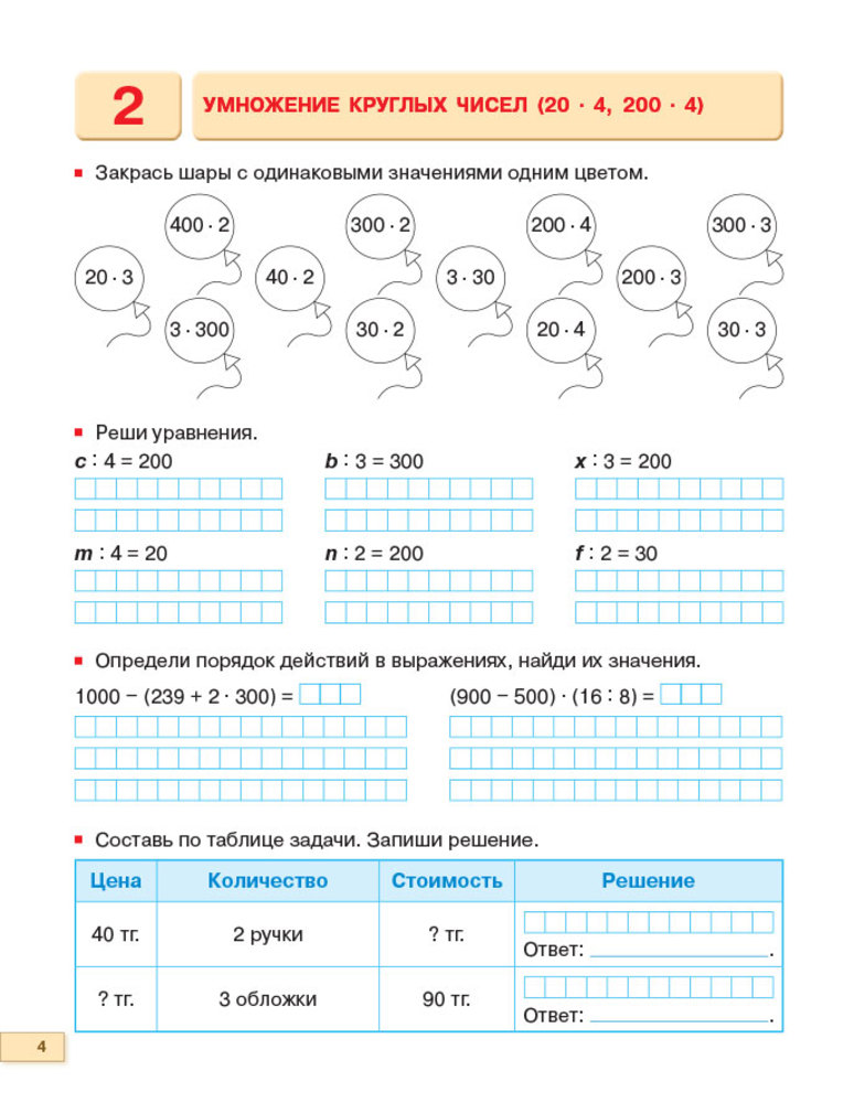 💳 Оплатить за товар можно при получении 🇰🇿 Есть бесплатная доставка по Казахстану 🎁 Копите бонусы с каждой покупки Серия: Рабочие тетради 3 класс «8&8» Данное пособие включает задания различных уровней сложности по одной из базовых тем, определённых программой по математике для 3 классов общеобразовательных школ: «Устное умножение и деление». |