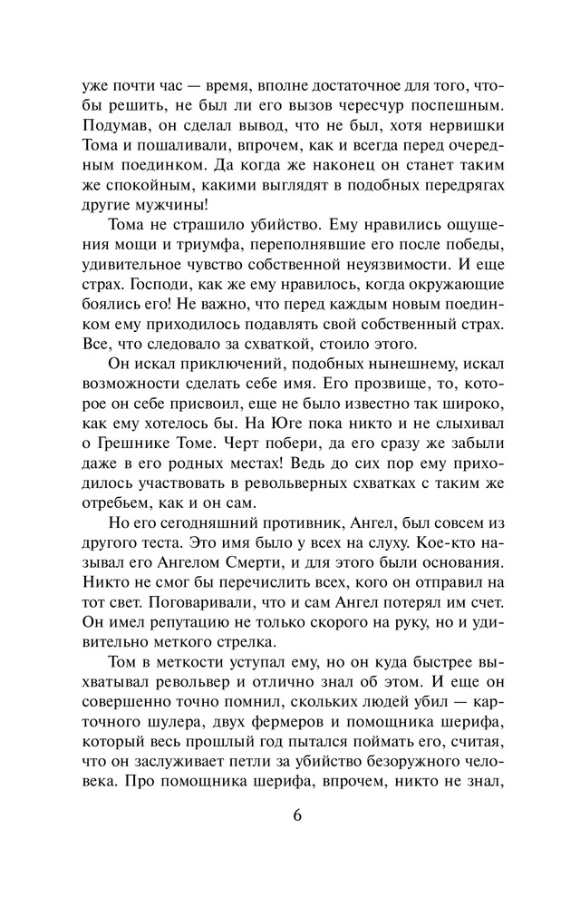 Этого загадочного человека называли Ангелом. По пятам за ним следовала слава самого быстрого, самого отчаянного, самого безжалостного стрелка во всем буйном Техасе. Он не верил ни во что, кроме своего смертоносного кольта до той поры, пока его помощи не попросила юная и невинная Касси Стюарт.