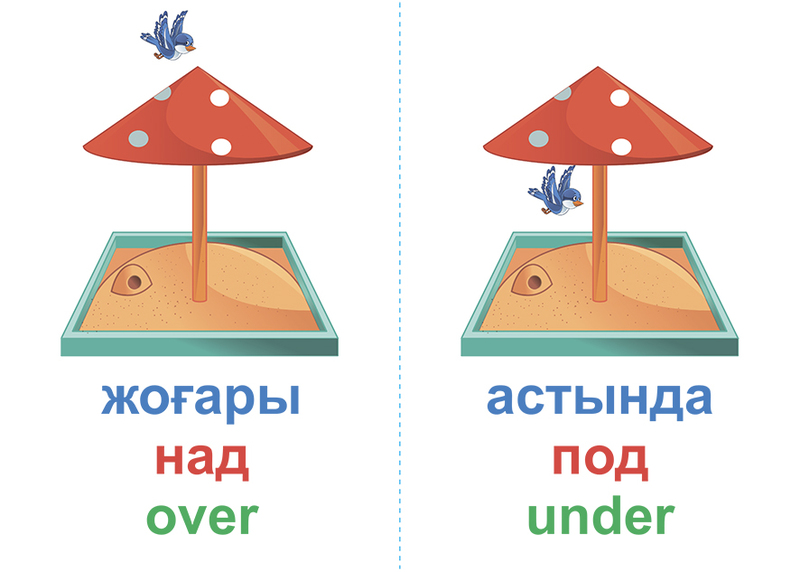 «Кеңістікте бағдарлау» жиынтығы балаларды заттардың бір-біріне қарағанда кеңістіктегі және қағаз парақтағы орындарымен таныстыруға арналған. Жиынтықты қолдану бір заттың басқаларына қарағандағы орнын анықтауды, сөйлеу тілінде кеңістік қатынастарын анықтайтын қызметтік сөздер мен сөз тіркестерін пайдалануды қалыптастыруда және оларды үш тілде (қазақ, орыс, ағылшын) айтуды үйретуде өз септігін тигізеді. |
