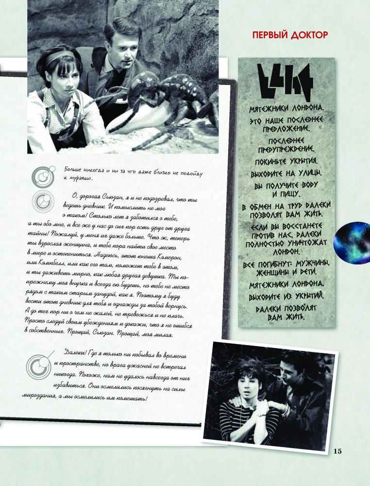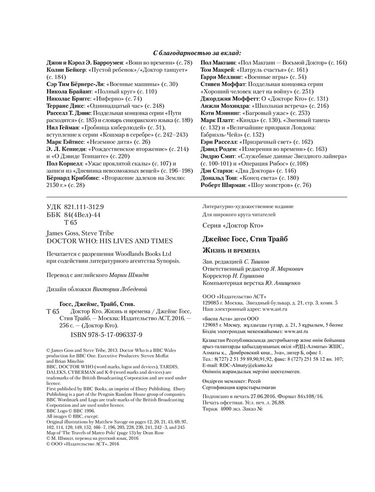 Доктор Кто. Жизни и времена. Путеводитель по сериалуВ данный момент этот товар отсутствует в продаже. Возможно, у нас найдется аналогичный или похожий товар здесь. Серия: Доктор Кто Этот информативный и красочный путеводитель содержит 11 разделов, которые рассказывают об 11 перевоплощениях Доктора. Помимо увлекательных писем, дневников, сверхсекретных правительственных данных, обрывков записок, вы найдете истории, мнения и впечатления создателей и исполнителей главных ролей о создании культового британского сериала «Доктор Кто». |
