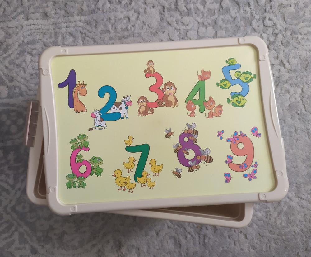 Отличный ящик! Качественный пластик, хорошо обработан, без постороннего запаха, плотный, красивый дизайн с функцией обучения. Подойдет для конструктора, мелких игрушек.