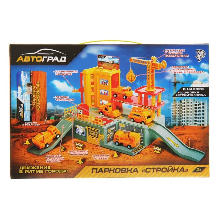 Забияка Парковка "Стройка"В данный момент этот товар отсутствует в продаже. Возможно, у нас найдется аналогичный или похожий товар здесь. Парковка «Стройка» — это яркий игровой набор, с которым мальчишка возведёт свой собственный город. |