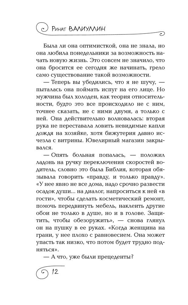 Книга интересная. Для тех, кто любит размышлять над смыслом сказанного. Люблю цитаты, их здесь полно. Мне нравится, когда книга заставляет задуматься, рассмотреть разные варианты, посмотреть на ситуацию глазами разных героев, поэтому мне нравится эта книга. Женщинам, думаю, будет интересно взглянуть на мир отношений с точки зрения мужчины.