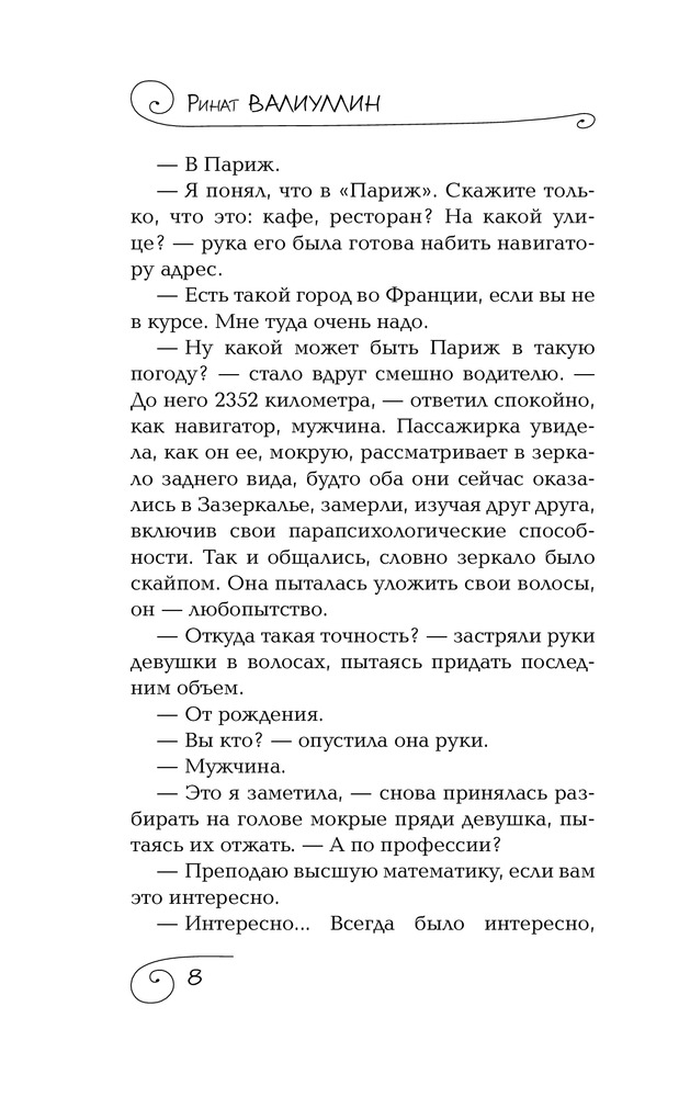 Хороший переплет книги, страницы белые, буквы большие) Сама же книга интересная, но немного надоедают диалоги героев, которые состоят сплошь из "умностей", что ни фраза, то крылатое выражение. Конечно интересно и можно все их разговоры разобрать на цитаты, но иногда хочется просто читать, а не переваривать каждую фразу. Понимаю, что это стиль автора и думаю, что прочту и другие его книги, чтобы до конца его понять.