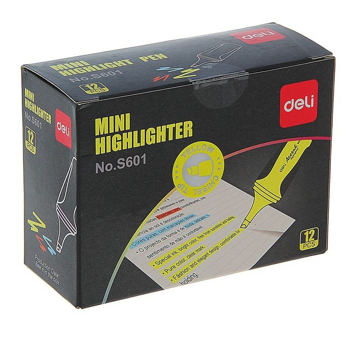 DELI Маркер текстовыделитель «DELI» наконечник скошенный, 5 мм, желтый-25%