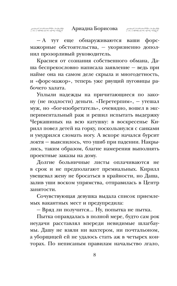 В авторский сборник Ариадны Борисовой вошли рассказы и повести. Все они — о внутренней свободе, человеческих страхах и, конечно, о любви.
