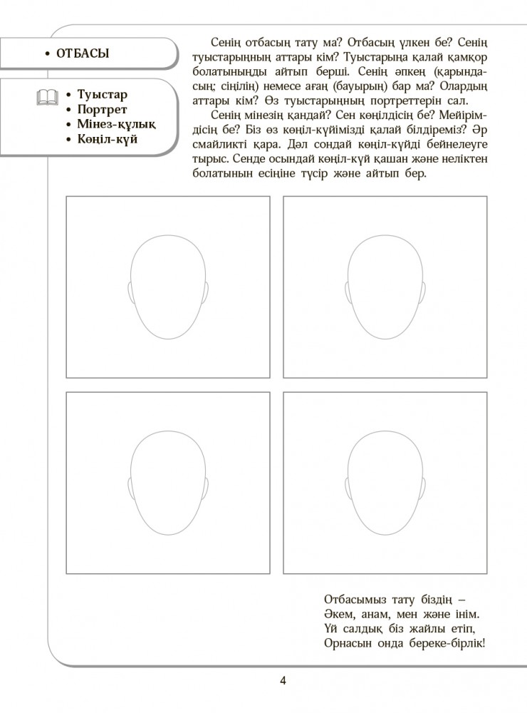 Приобрела ребенку книги из этой серии для развития разговорного казахского. Очень понравилось, что текст дублируется на русском. Качество печати хорошее, задания помогают проработать с ребенком разные темы. Рисунки выполнены в виде раскраски, моим детям это только в радость, можно и позаниматься и поразукрашивать! Сервис Флип.кз, как всегда, на высшем уровне - удобная навигация на сайте и реальные сроки выполнения заказа.