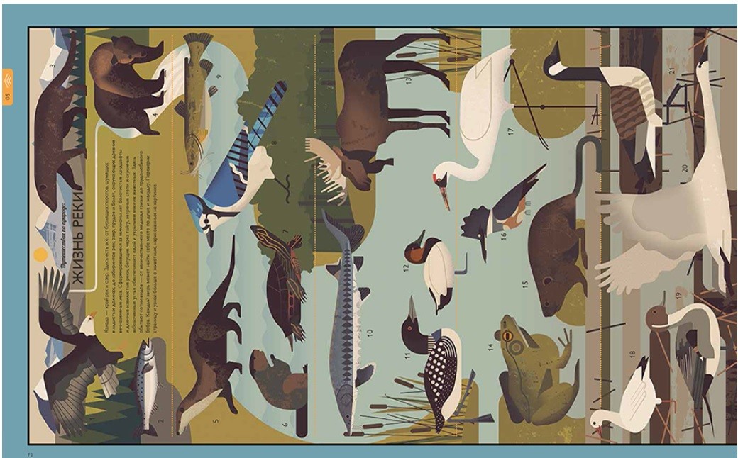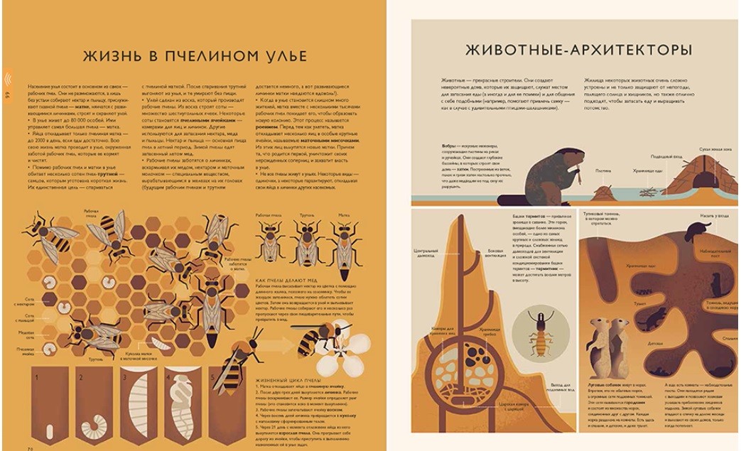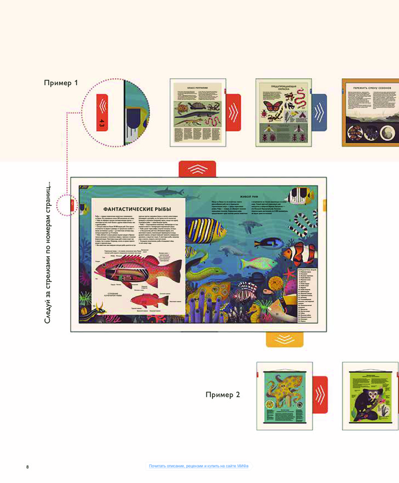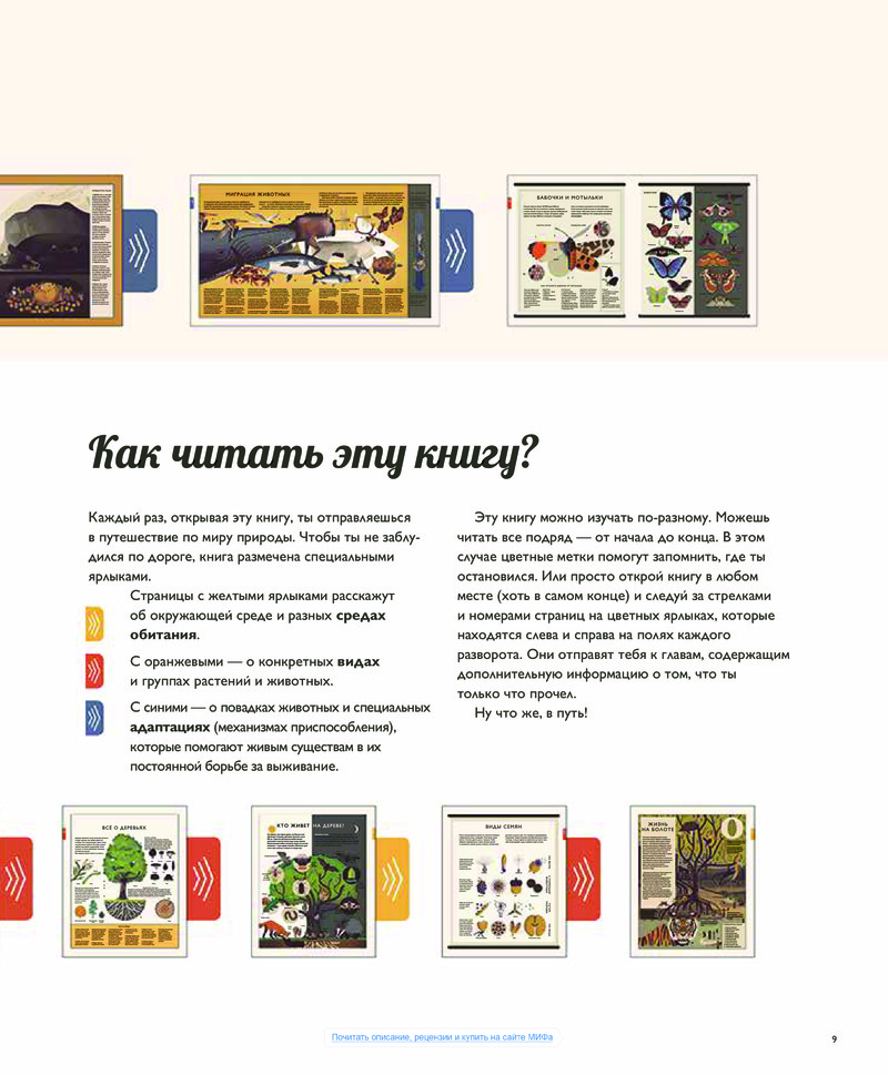 Помню, у меня была энциклопедия по биологии - серая, скучная, всё перемешивающая в голове в кашу((( А эта - яркая, позитивная, понятная и жутко интересная (пока мне, но надеюсь, что в школе она пригодится и сыну). Книга большого формата в матовой обложке с частичной лакировкой, страницы офсетные плотные. Мне невероятно понравились иллюстрации в одном стиле, они объединяют книгу. Честно признаться, что в большинстве энциклопедий на тему природы меня раздражает обилие ярких разношёрстных фотографий((( Эта книга очень познавательная, емкая по информативности, чего в ней только нет?! Полюбуйтесь сами.