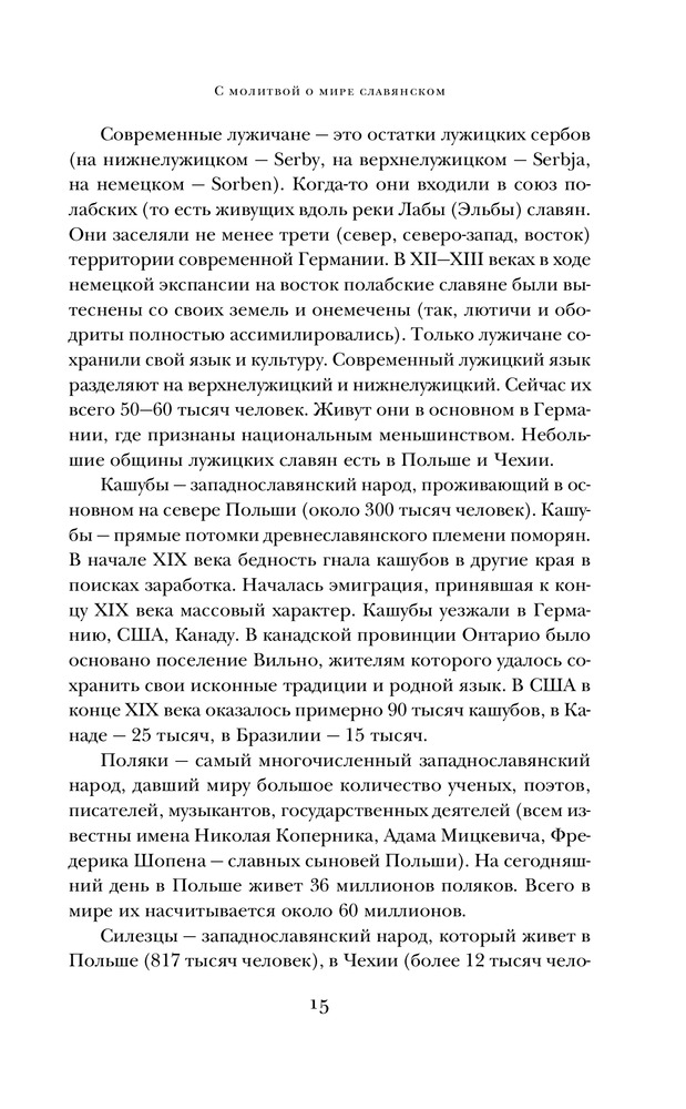 Эта книга — гимн жизни во всех ее проявлениях. В нее вошли разного рода предания (сказки, легенды, мифы) народов, составляющих обширную и самобытную группу западных славян. Удовольствие от чтения этой книги получат и любители занимательных детских сказок, и те, кто ищет в произведениях фольклора поучительные наставления, основанные на многовековом опыте, и приверженцы хоррора — историй, наполненных мистическим ужасом. Есть в ней место и юмору, и смеху, и сатире. Многие произведения сборника публикуются на русском языке впервые.