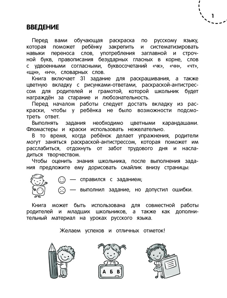 Пишем без ошибок. 2 классВ данный момент этот товар отсутствует в продаже. Возможно, у нас найдется аналогичный или похожий товар здесь. Серия: В помощь младшему школьнику. Раскраска-тренажер Пособие представляет собой раскраску-тренажёр, которая поможет ученику 2-го класса закрепить навыки грамотного письма, а также развить мелкую моторику, логику и внимание. В книге 31 задание на буквы и раскрашивание, цветная вкладка с рисунками-ответами, раскраской-антистрессом для родителей и грамотой, которой школьник награждается за старание и любознательность. Нестандартная подача материала в пособии поможет увеличить эффективность занятий. |