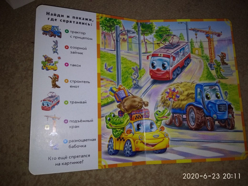 Сыну 1,4 года, очень нравиться книжка, с удовольствием находит машинки на картинке и не только машинки, показывает животных. Книжка хорошо развивает внимание. Картинки яркие, иллюстрации понятные, листы плотные, малыш не порвёт.
