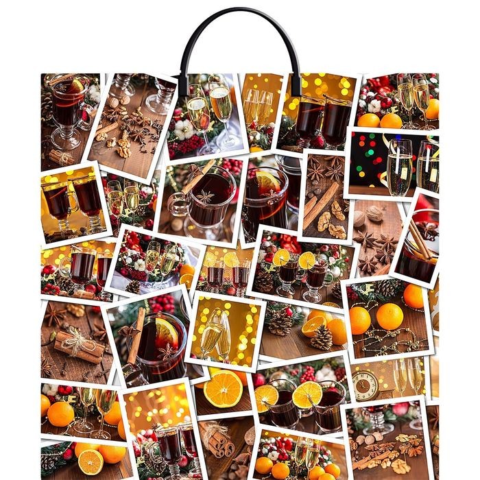 Пакет "Глинтвейн" изготовлен из плотного, не просвечивающегося полиэтилена, очень празднично украшен. Его можно использовать, как для оформления подарка, так и для повседневного использования и он достаточно вместителен. Я очень довольна своим выбором, советую к приобретению.