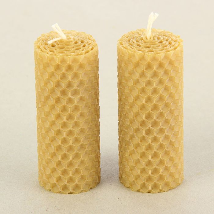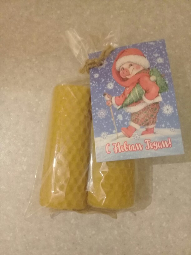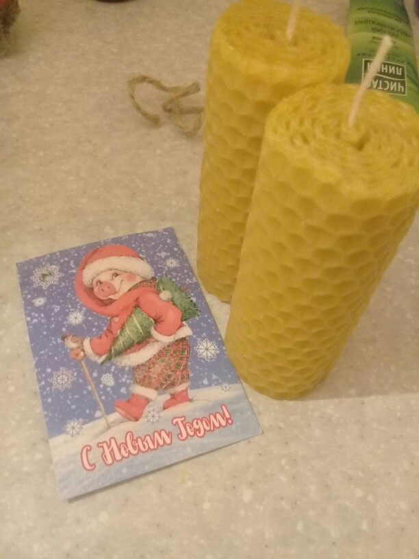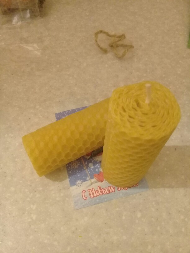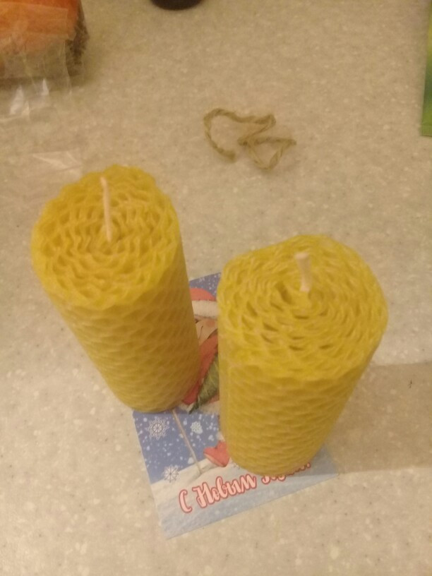Свечи не большие. Сформованы, как рулончик из листа вощины. Пахнут очень хорошо. Новогодний запах дома обеспечен. Рекомендую!