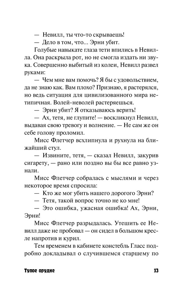 Тупое орудиеВ данный момент этот товар отсутствует в продаже. Возможно, у нас найдется аналогичный или похожий товар здесь. Серия: Золотой век английского детектива Эрнест Флетчер — богач и любитель женщин — был убит в собственном кабинете. Но кто нанес ему смертельный удар тупым орудием? Незамужняя сестра? Погрязший в долгах племянник? Красавица-соседка? Партнеры по сомнительным сделкам? |