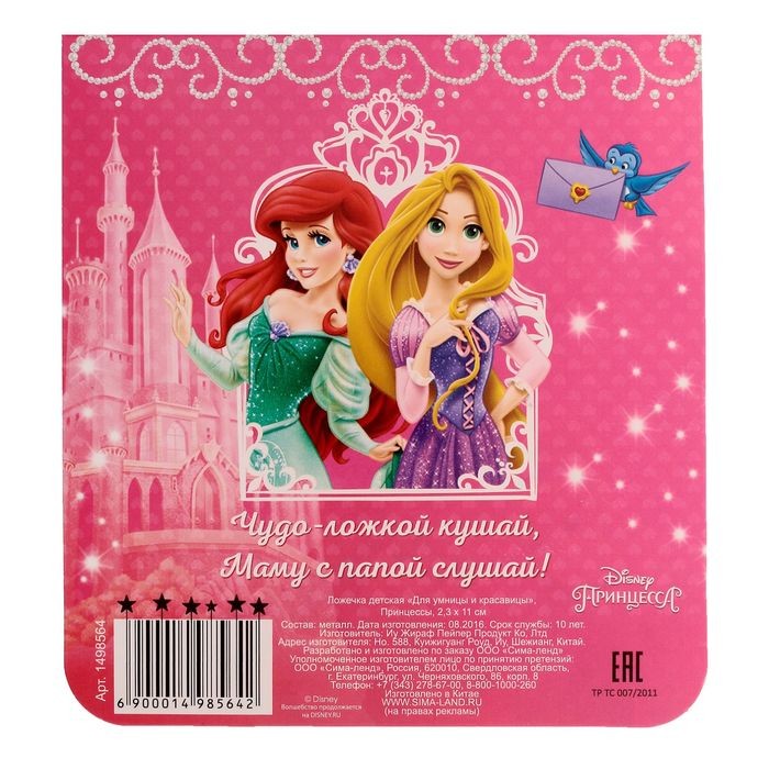Disney Ложечка детская «Для умницы и красавицы», Принцессы, (2,3х11 см)-25% +48 дизайн размер