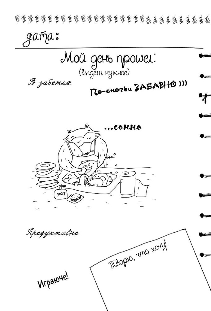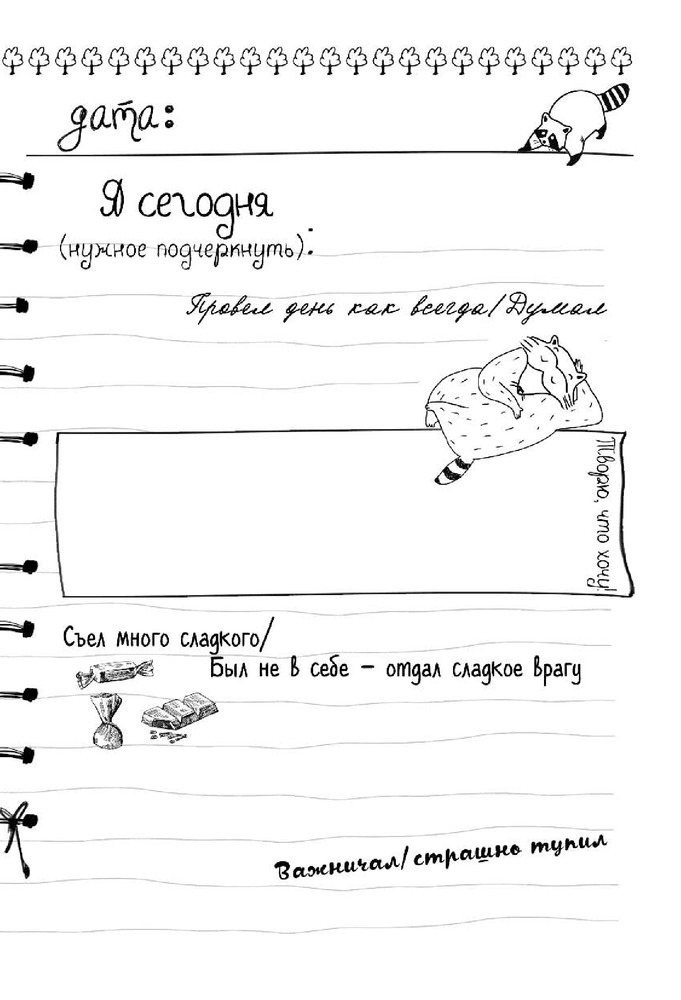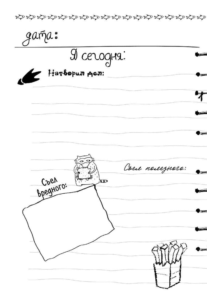 💳 Оплатить за товар можно при получении 🇰🇿 Есть бесплатная доставка по Казахстану 🎁 Копите бонусы с каждой покупки Серия: Блокноты-Еноты. Дерзкий Енот Надоели дневнички в рюшечках и сердечках? Тогда этот дневник, то что тебе нужно! Дерзкий енот объявляет войну «ми-ми-ми»! Записывай на каждой странице, что ты сделал, нашел или съел. Зарисовывай свои мечты и желания, составляй списки неизбежных дел, оценивай прошедший день по шкале котиков и мандаринов. Каждая страница — это новый день, который не похож на другие. Бери в руки ручку, карандаш, мелок или перо — твори и бесчинствуй! |