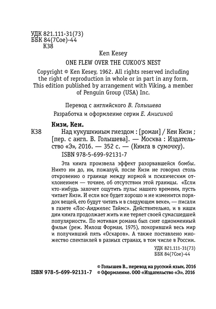 Эта книга произвела эффект разорвавшейся бомбы. Никто ни до, ни, пожалуй, после Кизи не говорил столь откровенно о границе между нормой и психическим отклонением — точнее об отсутствии этой границы. «Если кто-нибудь захочет ощутить пульс нашего времени, пусть читает Кизи. И если все будет хорошо и не изменится порядок вещей, его будут читать и в следующем веке», — писали в газете «Лос-Анджелес Таймс». Действительно, и в наши дни книга продолжает жить и не теряет своей сумасшедшей популярности. По мотивам романа был снят одноименный фильм (реж. Милош Форман, 1975), покоривший весь мир и получивший пять Оскаров. А также поставлено множество спектаклей в разных странах, в том числе в России.