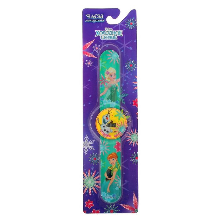 Часики хорошие. Ремешок скручивается сам и фиксируется на ручке. Малышка 3 года снять сама может, но одеть сама пока что никак. Секундомер - это громко сказано, просто при определенном нажатии кнопок часики показывают отсчет секунд в конкретной минуте настоящего времени. Ремешок широкий, циферблат (Или как назвать этот кругляш, на котором Олаф) достаточно крупный, при этом экранчик на котором показывается время - ну уж очень маленький. Цифры из-за этого мелкие. Тем не менее, ребенок доволен.