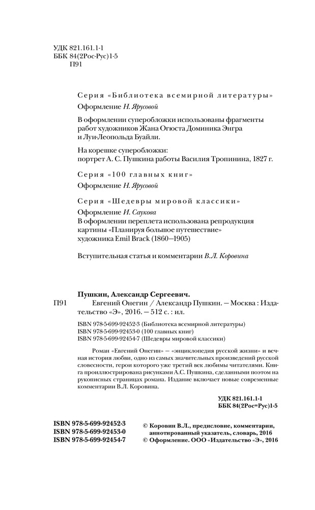 Евгений ОнегинАлександр Александрович Пушкин В данный момент этот товар отсутствует в продаже. Возможно, у нас найдется аналогичный или похожий товар здесь. Серия: 100 главных книг Роман «Евгений Онегин» — «энциклопедия русской жизни» и вечная история любви, одно из самых значительных произведений русской словесности, герои которого уже третий век любимы читателями. |