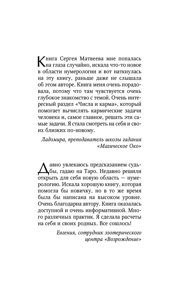 Добрый день! На днях получила свой заказ, книгу "Нумерология. Большая книга чисел Вашей судьбы", автор - С.Матвеев. Большое спасибо! Книга очень интересная, поможет мне в изучении этой интересной и занимательной науки. Буду рада сотрудничать с вами и впредь.