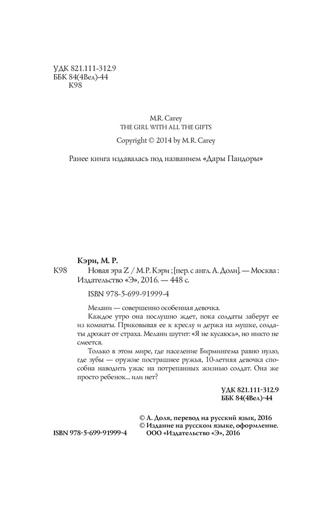 В данный момент этот товар отсутствует в продаже. Возможно, у нас найдется аналогичный или похожий товар здесь. Серия: Кинофантастика Мелани — совершенно особенная девочка.