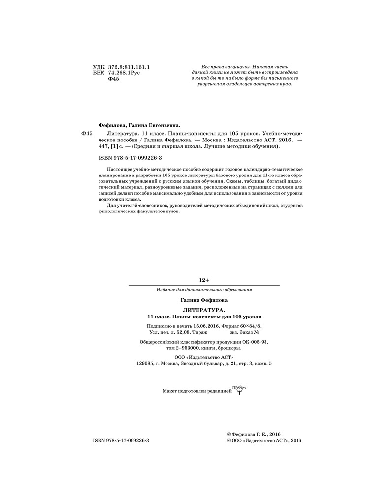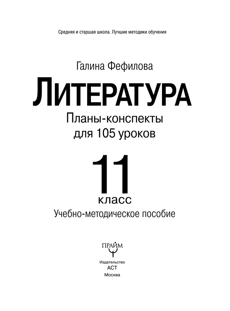 | Литература. 11 класс. Планы-конспекты для 105 уроков. Учебно-методическое пособие Галина Евгеньевна Фефмлова