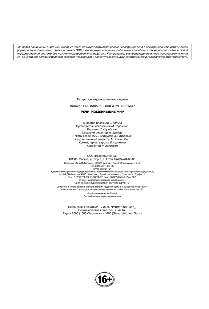 В данный момент этот товар отсутствует в продаже. Возможно, у нас найдется аналогичный или похожий товар здесь. Серия: Подарочные издания. Они изменили мир Могут ли слова изменить историю человечества? Безусловно, могут, если они произнесены великими людьми.