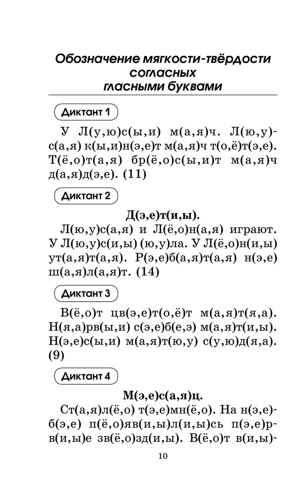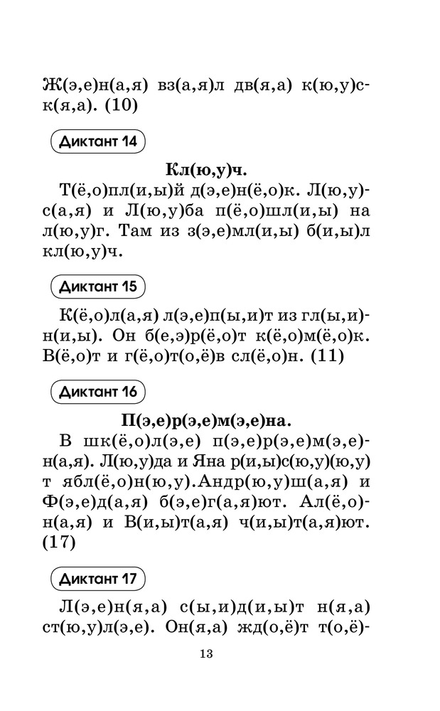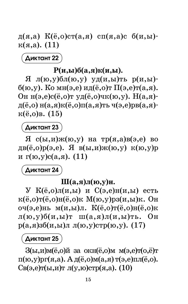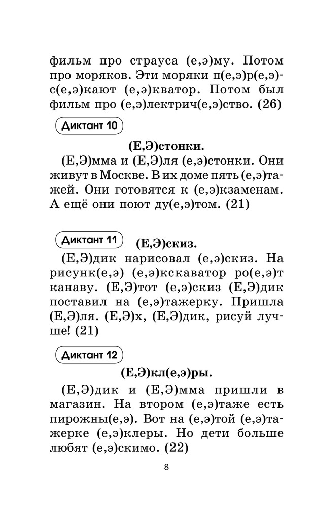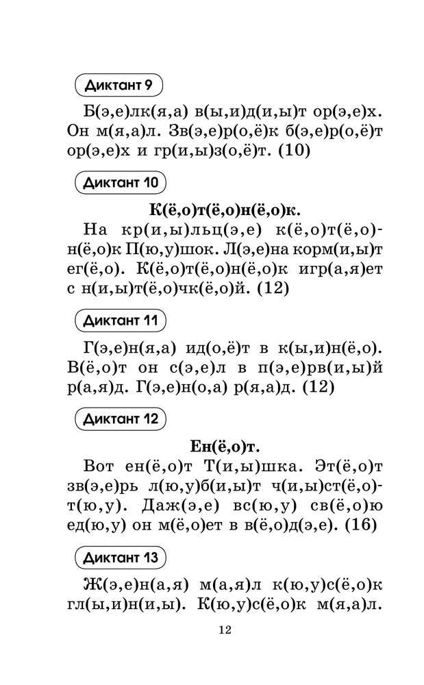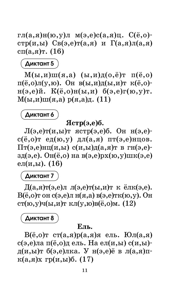 Просто набор маленьких текстов для диктантов. Никаких правил и заданий. Кто ищет просто тексты подойдет.