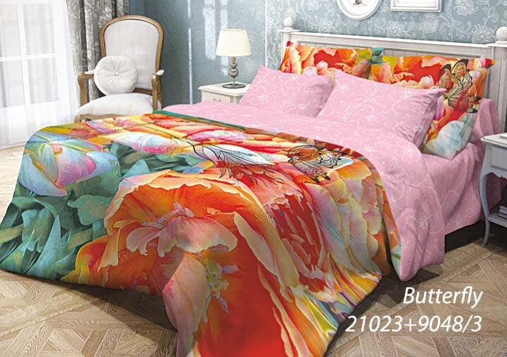 Комплект постельного белья «Butterfly» изготовлен из ранфорса (100% хлопок). Ранфорс - плотная, в тоже время мягкая ткань, похожая на бязь. Ранфорс отличается высокой прочностью и долговечностью, отлично держит форму, не линяет при стирке, не образует катышков и долго сохраняет свои потребительские качества.