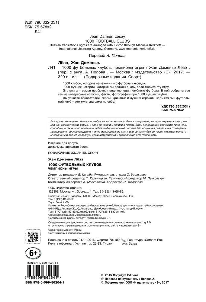 1000 лучших футбольных клубов. Чемпионы игрыВ данный момент этот товар отсутствует в продаже. Возможно, у нас найдется аналогичный или похожий товар здесь. Серия: Подарочные издания. Спорт 1000 клубов, которые изменили мир футбола навсегда. |
