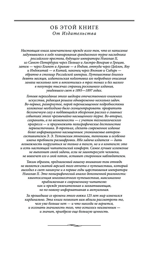Очень интересно автор рассказывает о будущем последнем императоре России,о его удивительном путешествии на Восток! Уникальные иллюстрации и удивительный текст делает книгу одной из лучших в вашей библиотеке.