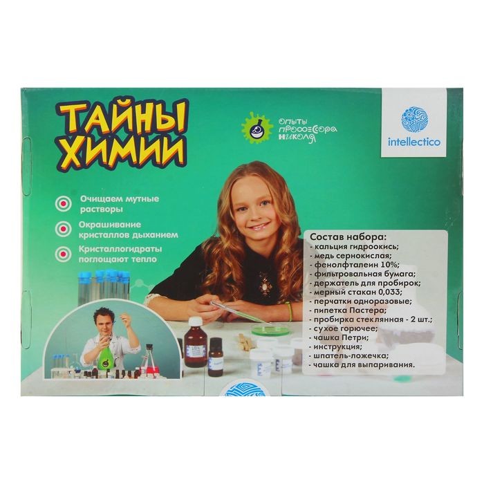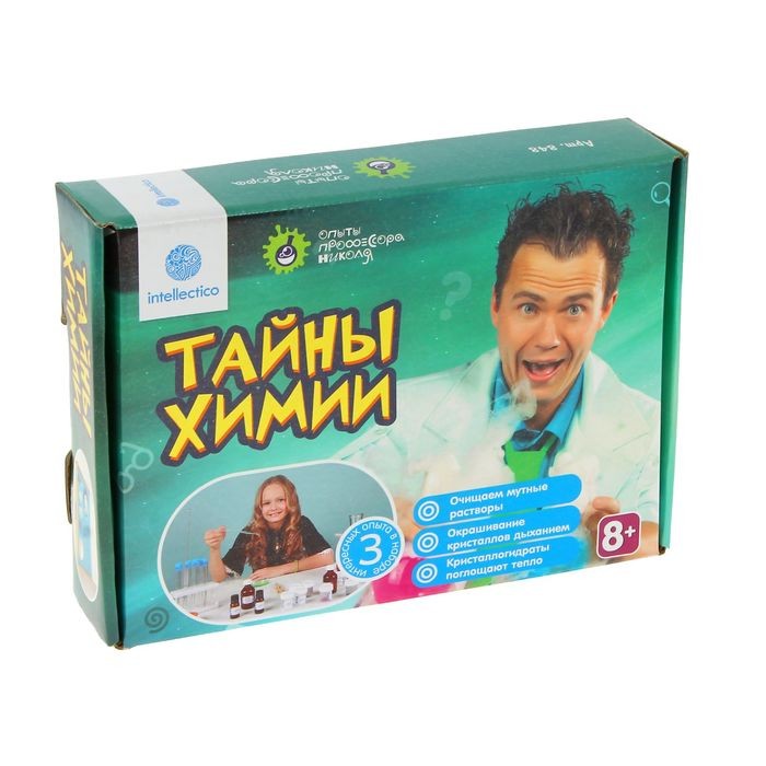 В данный момент этот товар отсутствует в продаже. Возможно, у нас найдется аналогичный или похожий товар здесь. Серия: Опыты профессора Николя Как обнаружить углекислый газ или кислоту в лимонаде? А какой из металлов является самым активным? На эти вопросы поможет ответить набор для опытов «Тайны химии». С ним вы проведёте настоящие эксперименты и узнаете о взаимодействии различных веществ. И всё это в домашних условиях!