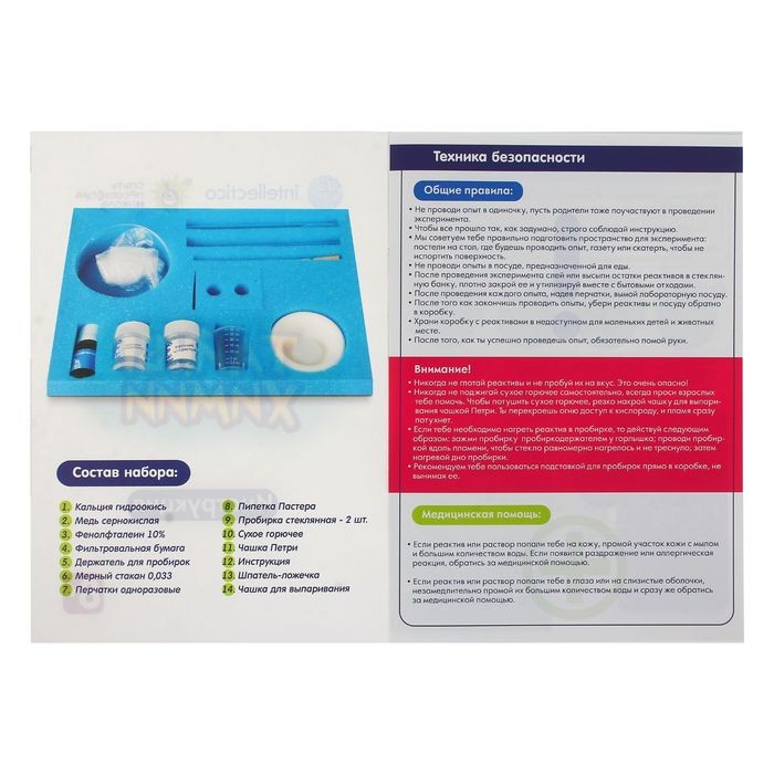 Набор предназначен для больших и маленьких химиков старше 8 лет.