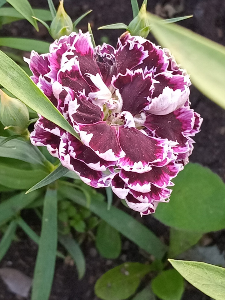 очень красивая гвоздика, такой необыкновенный цвет, очень хорошо сочетать в саду о цветовой гамме с другими растениями, в стадии роста рассады несколько раз прищипываю, начинает активно куститься, невысокая, см 30, но от местоположения тоже зависит, выращивала несколько лет, всегда без проблем, от рассады до цветения!!! любит солнце, хорошую удобренную почву, хорошо откликается на подкормки!!! ничем не болеет, вредителей тоже не замечала, но я обрабатываю свой сад профилактически, вообще, эта гвоздика моя любовь!!! жаль, что однолетние....