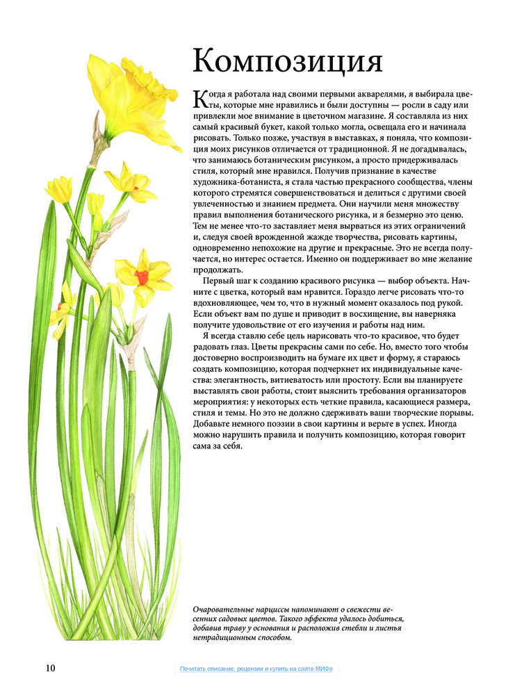 Отличное издание во всех отношениях! Из всех последних изданий по ботанической иллюстрации, это, пожалуй, самое лучшее. Великолепный стиль рисунка, классическая английская техника акварельной живописи, доступные пошаговые иллюстрации, грамотное описание технологии - все на высшем уровне! Очень довольна приобретением этой книги.