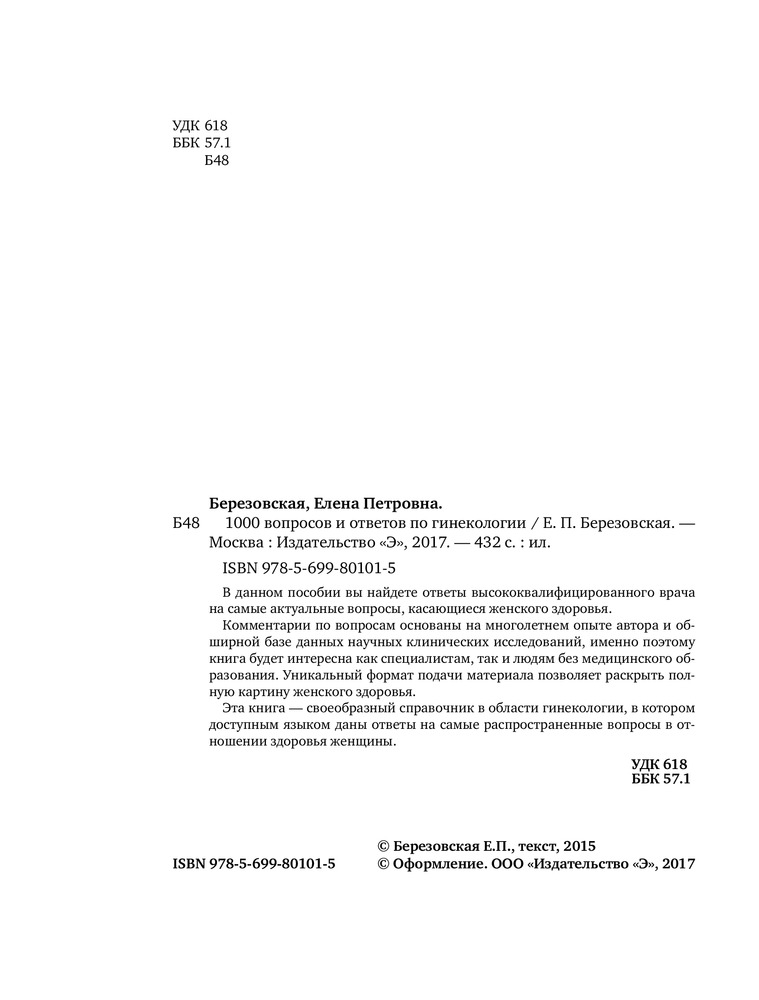 | 1000 вопросов и ответов по гинекологии Елена Петровна Березовская