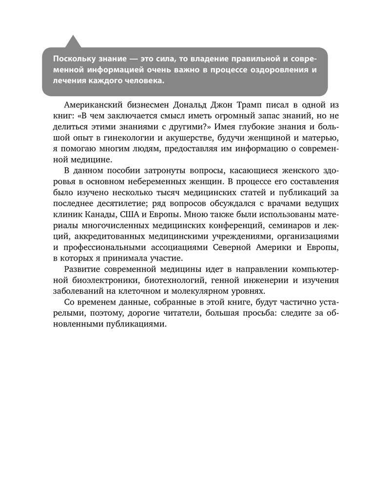 Комментарии по вопросам основаны на многолетнем опыте автора и обширной базе данных научных клинических исследований, именно поэтому данная книга будет интересна как специалистам, так и людям без медицинского образования. Уникальный формат подачи материала позволяет раскрыть полную картину женского здоровья.