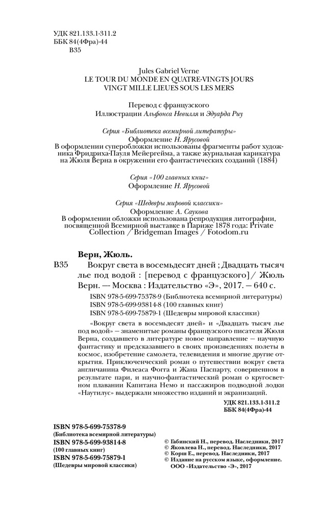 При выборе этой книги внимательно читайте описание. На обложке указана одно произведение "Вокруг света в восемьдесят дней" , а на самом деле их два. В этом же томе напечатано и "Двадцать тысяч лье под водой". В целом, хорошо изданная книга.