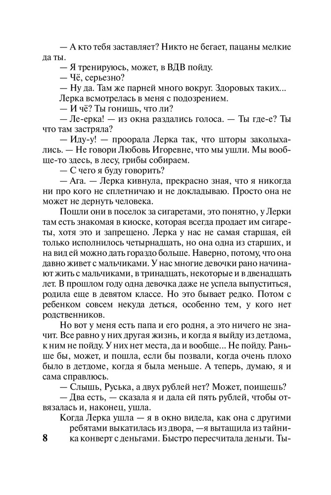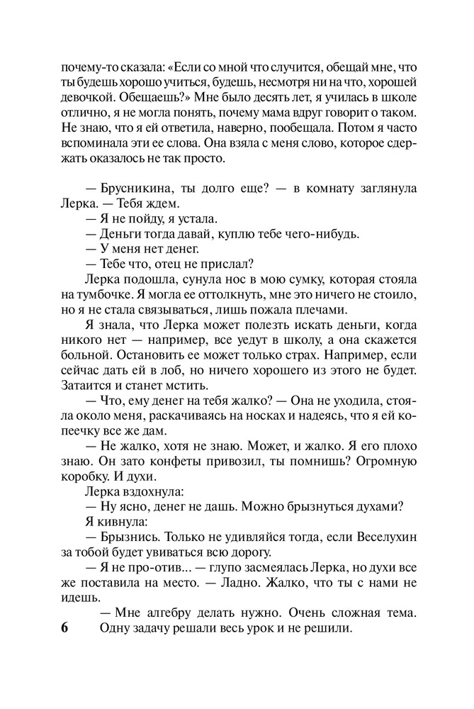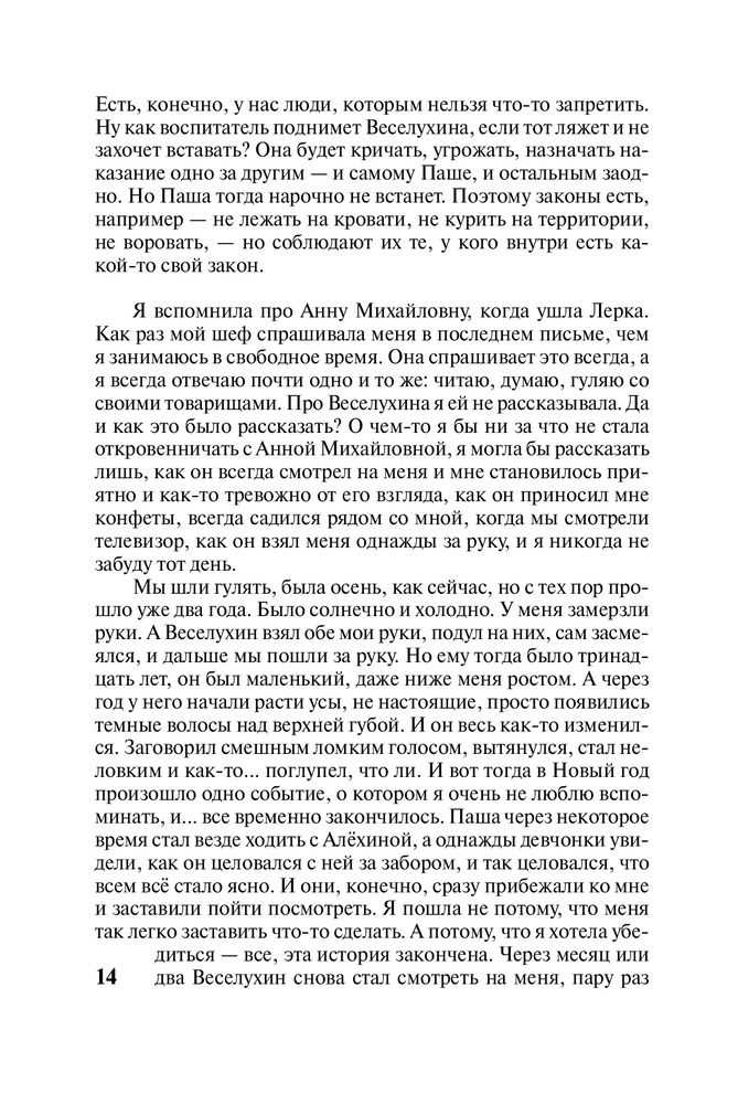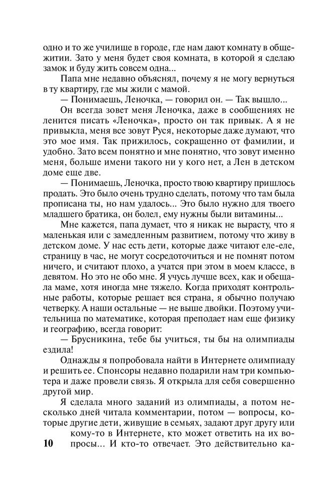 Другая жизнь Лены Брусникиной — это детский дом, в котором свои законы: строгие, честные и несправедливые одновременно. Дети умеют их обойти, но не могут перешагнуть пропасть, отделяющую их от «нормального» мира, о котором они так мало знают. Они — такие же, как домашние, только мир вокруг них — иной. Они не учатся любить, доверять, уважать, они учатся — выживать. Все их чувства предельно обострены, и любое событие — от пропавшей вещи до симпатии учителя, — в этой вселенной вызывает настоящий взрыв с непредсказуемыми последствиями. А если четырнадцатилетняя девочка умна и хорошеет на глазах, ей неожиданно приходится решать совсем взрослые вопросы...