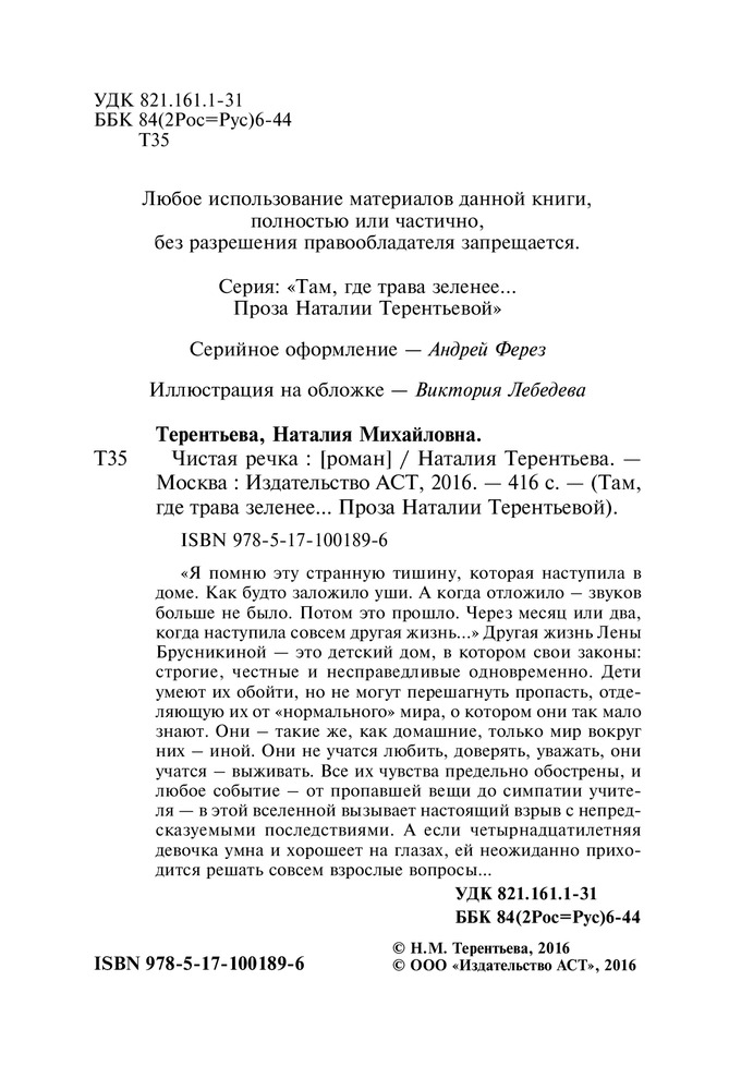 В данный момент этот товар отсутствует в продаже. Возможно, у нас найдется аналогичный или похожий товар здесь. Серия: Там, где трава зеленее… Проза «Я помню эту странную тишину, которая наступила в доме. Как будто заложило уши. А когда отложило — звуков больше не было. Потом это прошло. Через месяц или два, когда наступила совсем другая жизнь.»