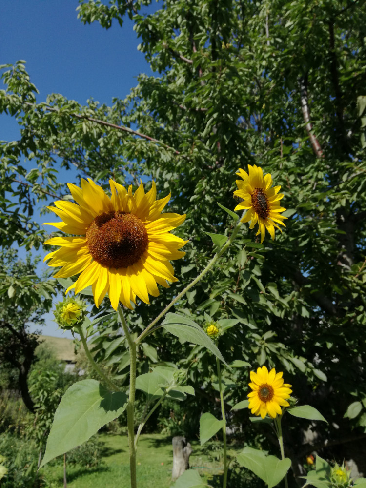 Брала весной 2 упаковки. Вырос урожай... Красных, как на упаковке, нет ни одного. Получилось только два с необычной окраской (один с оранжевым ободком на лепестках и один лимонного цвета), а все остальные обычные желтые подсолнухи, только меньше диаметром. Высота больше 1,5 метров, а то и все 2.