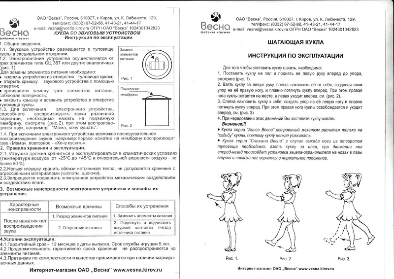 Кукла просто прелесть. Из всех, что я видела, кукол, в других магазинах фирмы Весна, это просто прелесть. Единственное, в коробке не оказалось инструкции. А так кукла пришла в том виде, в котором я ее увидела на вашем сайте. И именно на вашем сайте я нашла то, что искала месяцами. Спасибо большое!!!