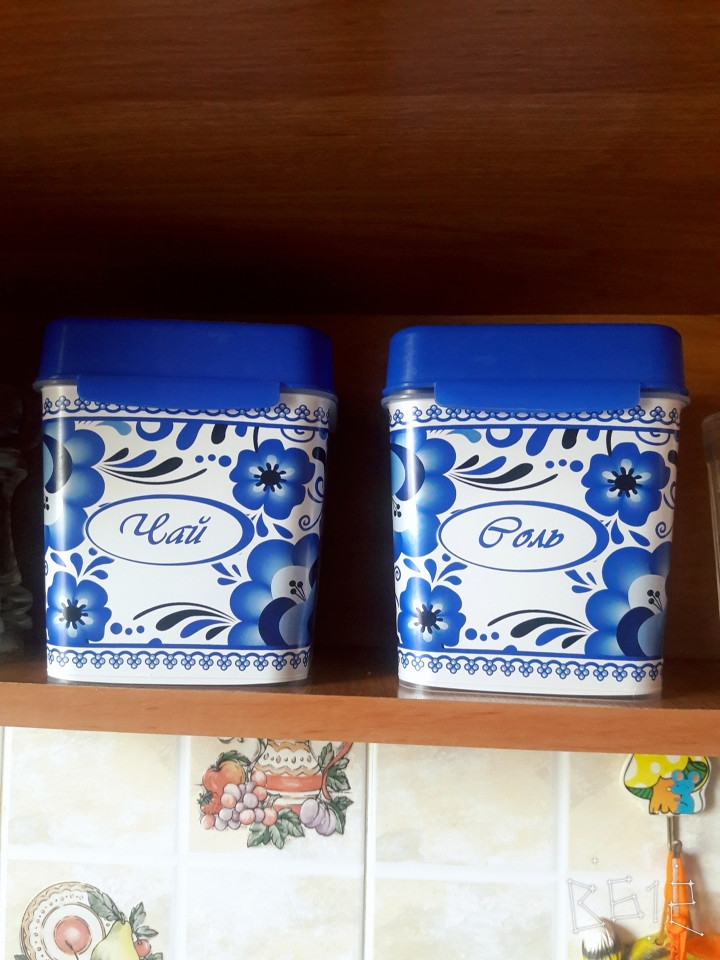 Емкость под соль специально приобрела вместе с подставкой для столовых приборов "Флорель" красочный набор получился. Но крышка сразу же выпала из разрезов и не держится, не совсем удобно при открывании. Однако с емкостью под чай такого не произошло.