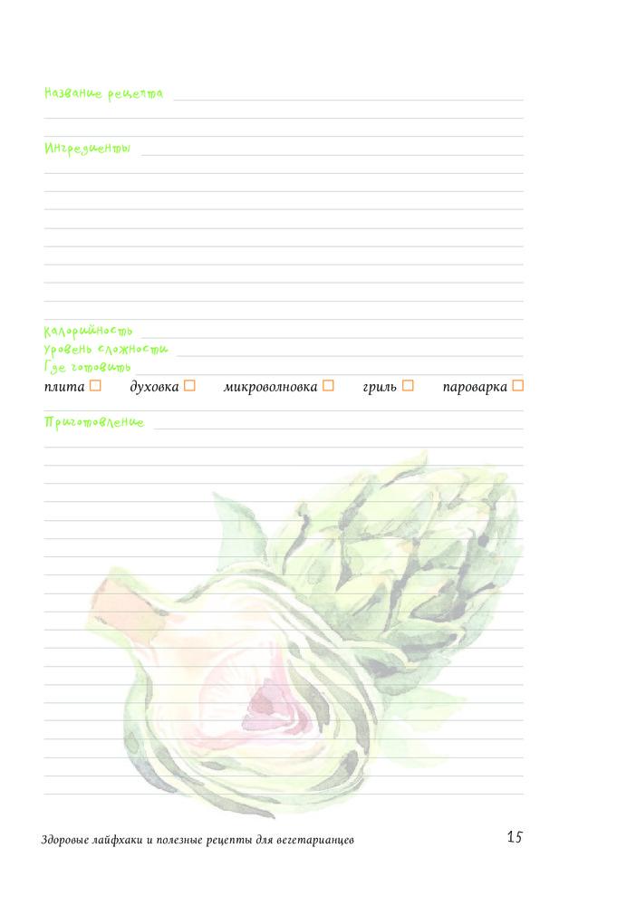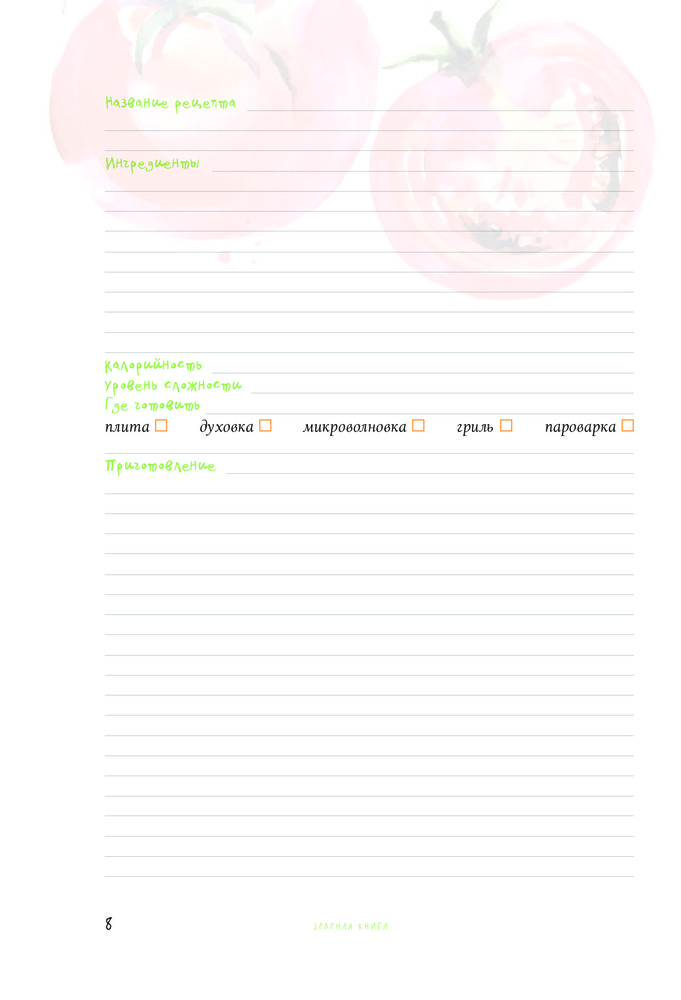 Блокнот для записи рецептов. Зеленая книга. Здоровые лайфхаки и полезные рецепты для вегетарианцев+81