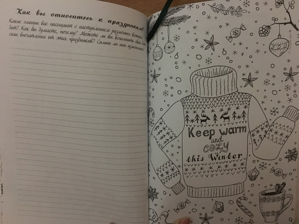 Очень красивый и яркий, но нужно раскрашивать остальное самому, и он не рассчитан на 365 дней, скорее - можно делать записи только в особые дни или недели. Есть задания - то описать свою мечту детства, или о любимом празднике, чем бы хотели заниматься, и честно - пришла ностальгия с анкетами моей юности, которыми обменивались и давали заполнять.
