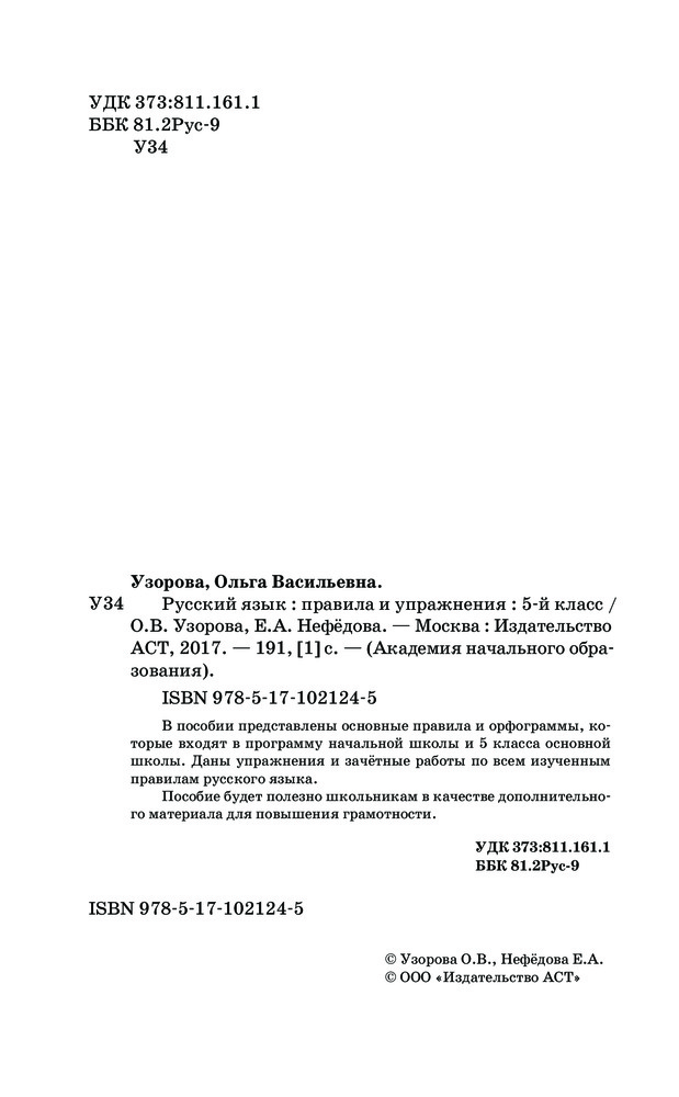 | Русский язык. Правила и упражнения. 5 класс Ольга Васильевна Узорова, Елена Алексеевна Нефедова