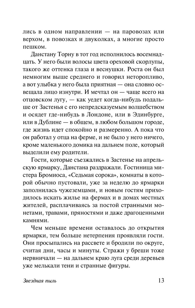Хорошая книга, пришла отлично, листы чистые белые опрятные, пришла за короткий срок, не так много страниц, но сюжет захватывает, ибо это как очень длинный фильм который показывает дорогу жизни Тристрана Торна, его путешествия по волшебной стране, про спасение звезды и смерть единорога, про штормхолд и 7ми братьев претендующих на престол, очень интересно